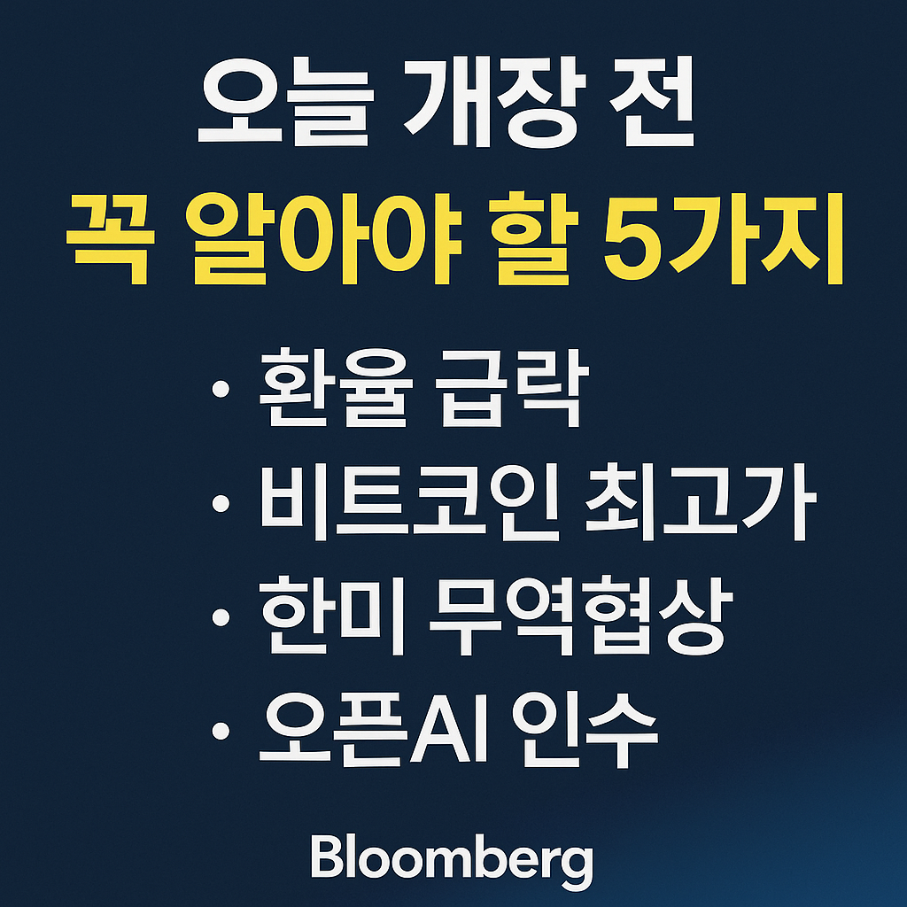 이번 포스팅에서는 우리나라 주식시장에 영향을 줄 환율과 가상화폐, 오픈AI 뉴스에 대해서 알아보겠습니다.