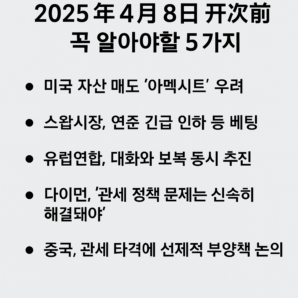 오늘 개장 전 꼭 체크해야 할 글로벌 주요 이슈 5가지 정리해 드릴게요. 요즘 같은 관세 폭탄장 속에 방향을 잃지 않도록 하나씩 차분히 짚어봅시다.
