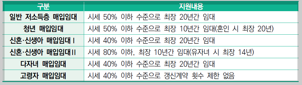 이를 위해 정부는 기존주택을 매입하여 저렴한 임대료로 제공하는 매입임대주택 지원 정책을 운영하고 있는데요.