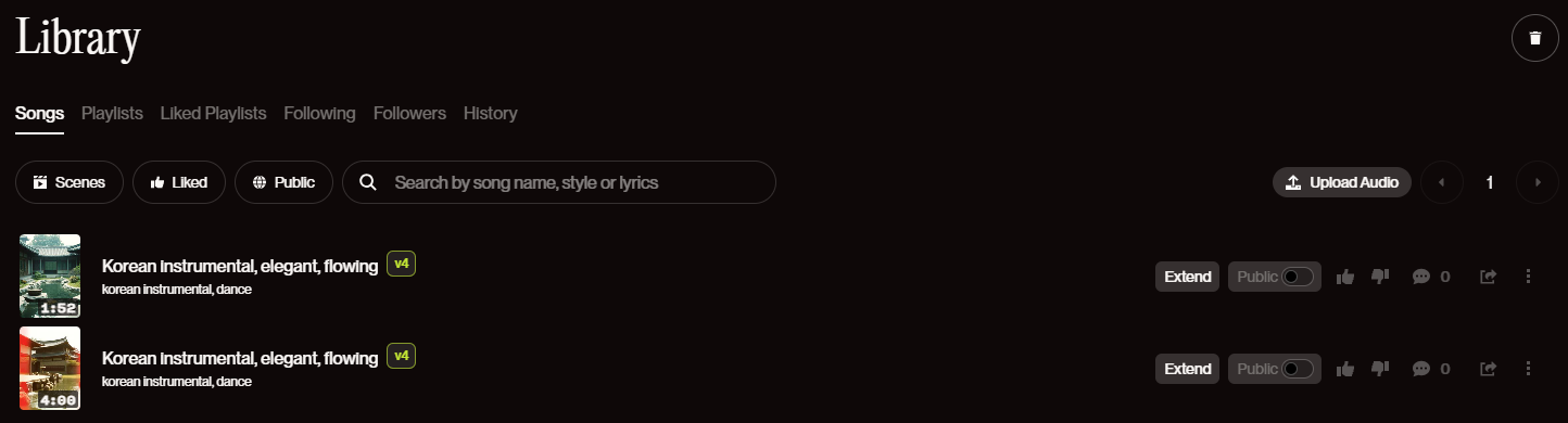 개인적으로 놀라웠던 점은 목소리까지 AI가 직접 만들어준다는 거예요. 사람이 부른 것처럼 자연스럽고 매끄럽습니다.