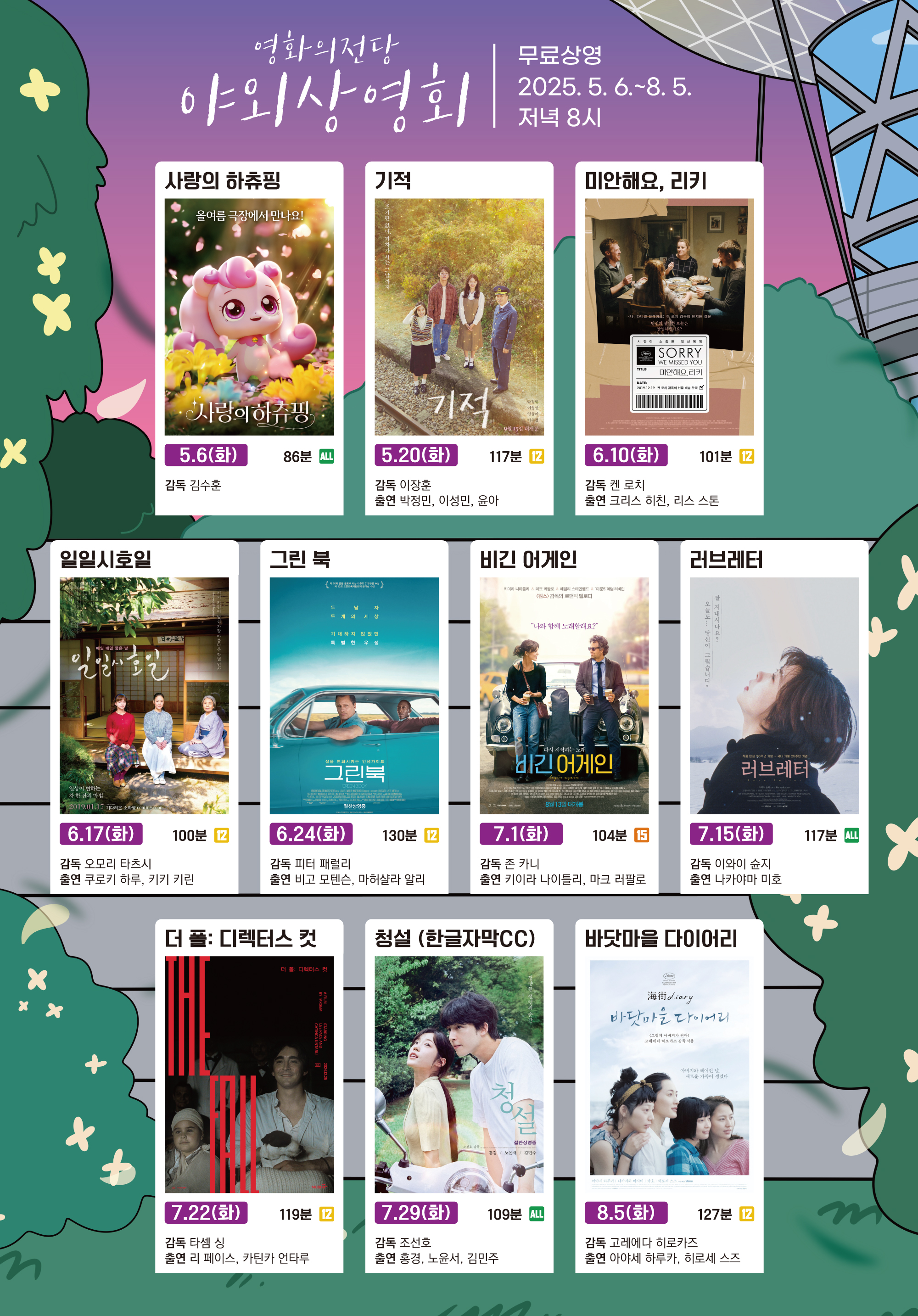올해 야외상영회는 5월 6일(화)부터 8월 5일(화)까지 총 10회 열려요.