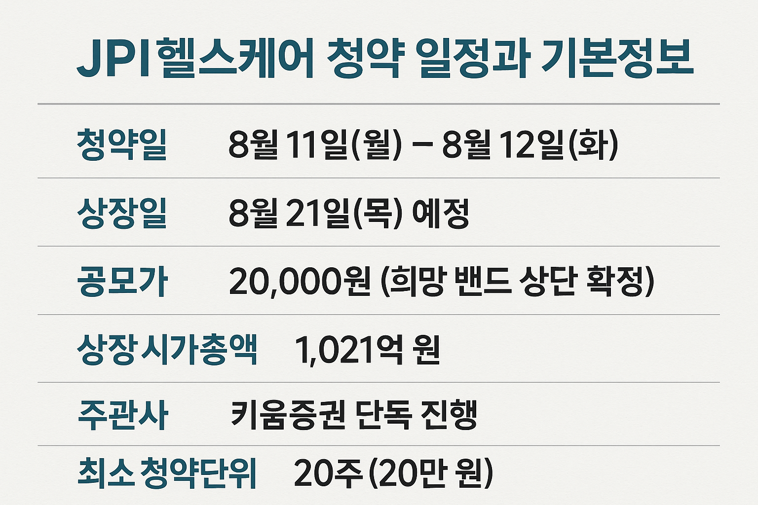제이피아이헬스케어 청약 일정과 기본정보