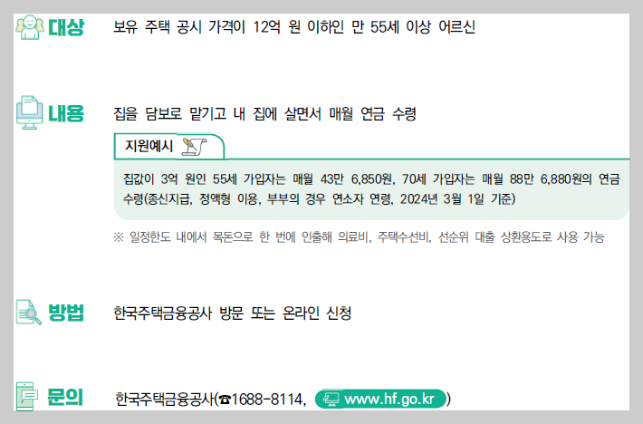 이 제도를 통해 경제적 어려움 없이 노후를 준비할 수 있으며, 주택에 계속 거주하면서도 필요한 생활비를 마련할 수 있습니다.