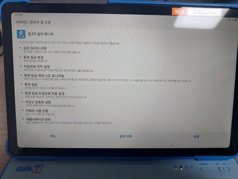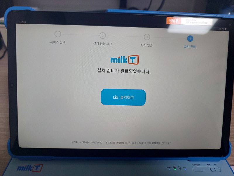 와이파이 연결과 배터리 상태, 그리고 태블릿 시리얼 인증 확인해요.