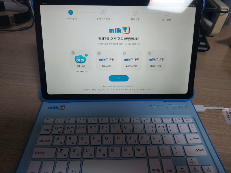 우선 서비스 선택 화면이 나오는데요. 저는 밀크티 초등을 선택했어요. 중등, 고등까지 지원되요.