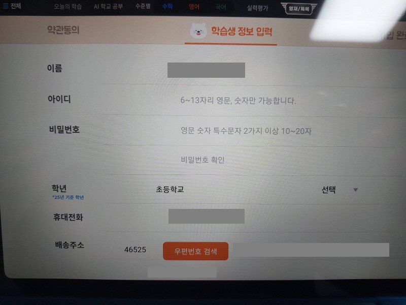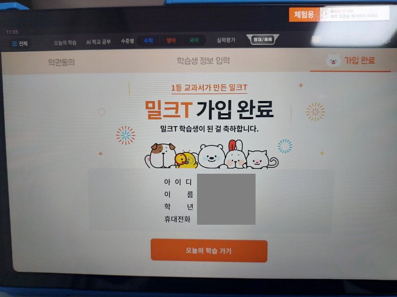 학습생의 정보를 입력하면 모든 과정이 끝나게 됩니다. 참 쉽죠? 몇 분 안걸렸던 것 같아요.