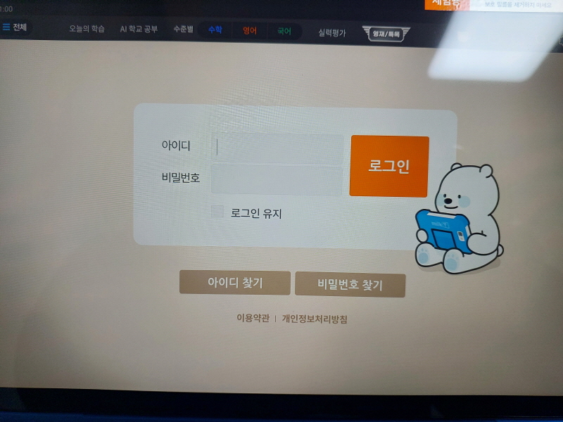 짜잔~ 밀크티 초기화면이 나오구요. 부여받은 아이디와 패스워드를 입력한 후 약관에 동의하면 되요.