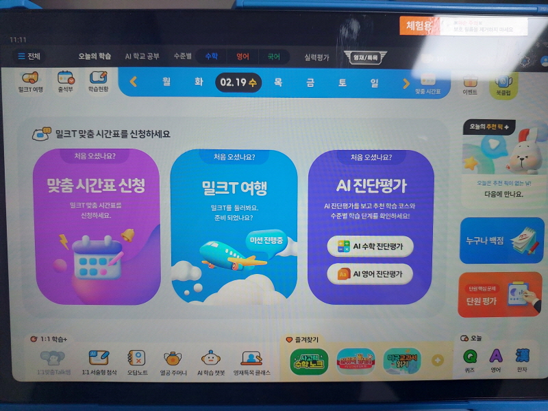 밀크T초등은 다행히 무료체험을 제공해서, 부담 없이 먼저 사용해볼 수 있더라고요.