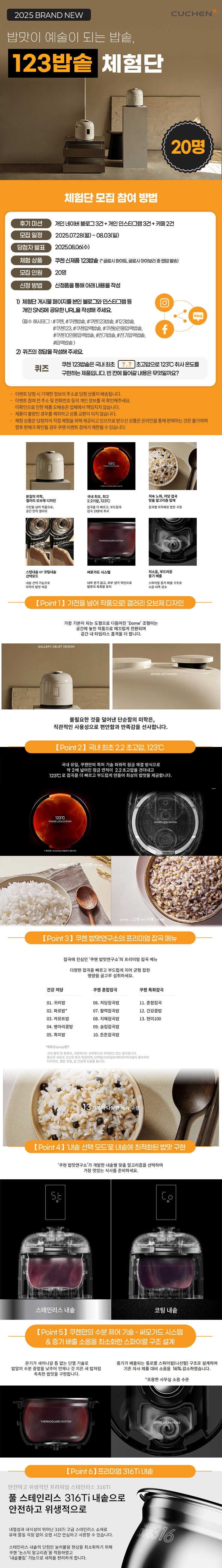 [쿠첸] 2025 NEW! 신제품 123밥솥 체험단(~8/3)