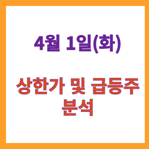 4월 1일(화) 상한가 및 급등주 분석해보겠습니다.