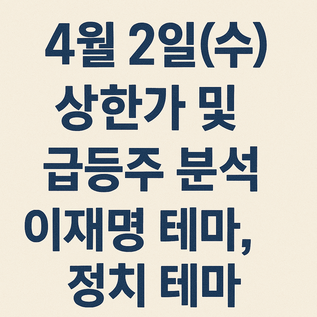 4월 2일(수) 상한가 및 급등주를 분석해보겠습니다.